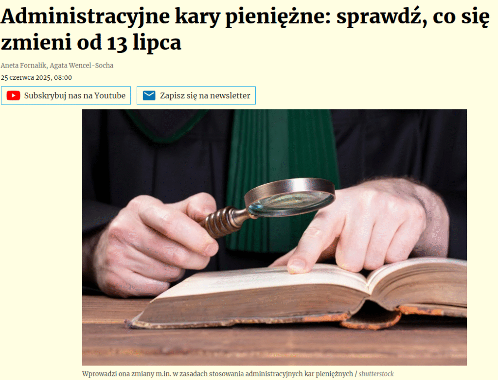 „Administracyjne kary pieniężne: sprawdź, co się zmieni od 13 lipca” – artykuł adw. Anety Fornalik i r. pr. Agaty Wencel-Sochy w Dzienniku Gazeta Prawna