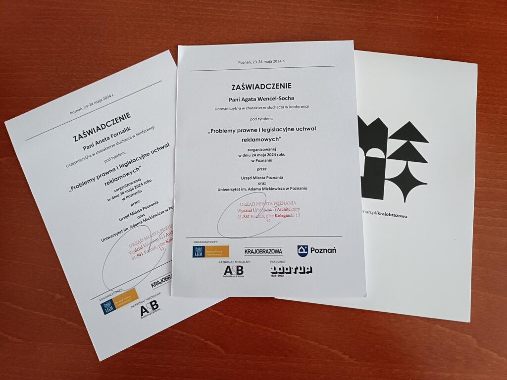 W dniu 24 maja 2024 roku w Poznaniu adwokat Aneta Fornalik oraz radca prawny Agata Wencel-Socha miały okazję uczestniczyć w konferencji „Problemy prawne i legislacyjne uchwał reklamowych” zorganizowanej przez Urząd Miasta Poznania oraz Uniwersytet im. Adama Mickiewicza w Poznaniu.