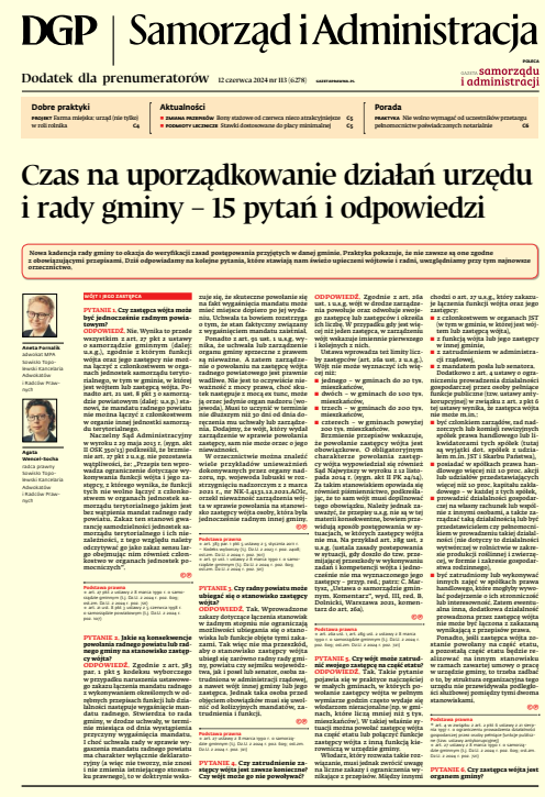 W środowym wydaniu Dziennika Gazeta Prawna ukazał się artykuł adw. Anety Fornalik oraz r. pr. Agaty Wencel-Sochy pt. „Czas na uporządkowanie działań urzędu i rady gminy – 15 pytań i odpowiedzi”.