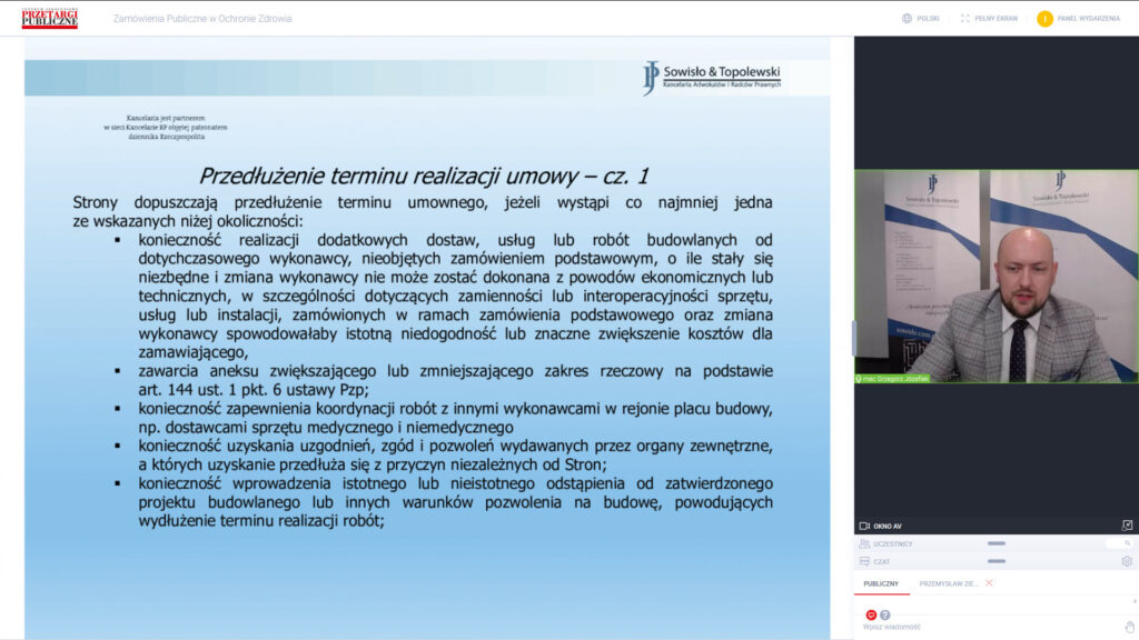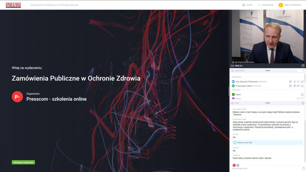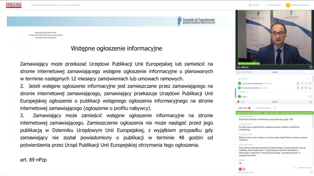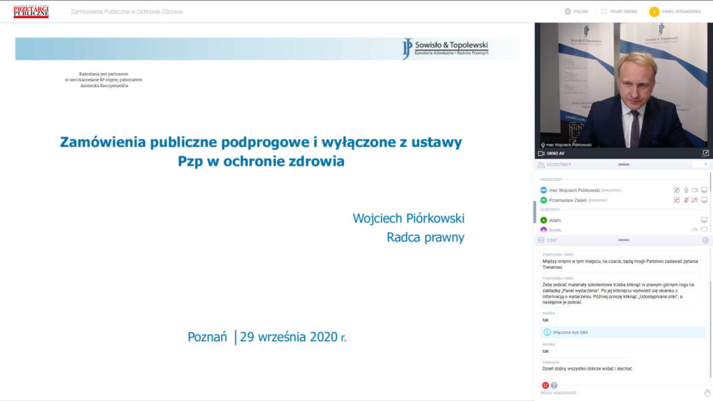 Am 29. September 2020 veranstaltete unsere Kanzlei gemeinsam mit der Monatszeitschrift „Przetargi Publiczne” (Presscom sp. z o.p.) eine Konferenz „ÖFFENTLICHE AUFTRÄGE IM GESUNDHEITSWESEN”