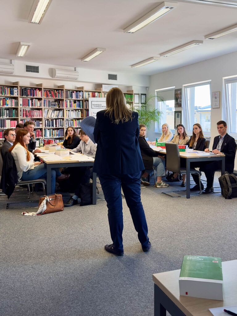 Die Teilnehmer hatten dabei die Möglichkeit, von unseren Fachanwälten für Verwaltungs-, Straf- und Zivilrecht sowie für geistiges Eigentum zu lernen. Gerade auf diese Rechtsgebiete bezogen sich die Diskussionen über speziell für diesen Rechtsworkshop vorbereitete Fallstudien. Der juristische Teil, bei dem Studierende mit ihrer aktiven Teilnahme punkten konnten, wurde von RAin Aneta Fornalik, RAin Paulina Kozłowska, RAin Urszula Nowaczyk, RAin Joanna Sowisło, RAin Marta Łojek, RAin Marta Fredrych und RAin Małgorzata Łobocka-Szok betreut.