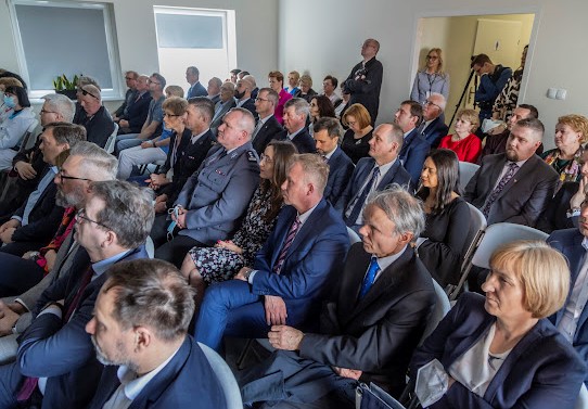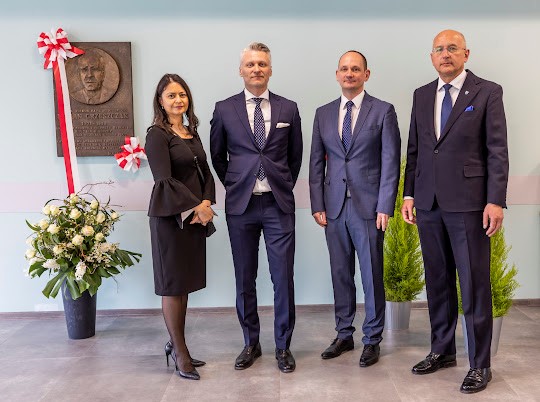 Anschließend wurde eine Gedenktafel zu Ehren von Dr. Roman Grzeszczak enthüllt, und nach einigen Reden, u. a. des Krankenhausdirektors, des Starosts und des Vizestarosts, eröffnete Andrzej Grzeszczak, der Sohn von Dr. Roman Grzeszczak, symbolisch den neuen Teil der Heilanstalt.
