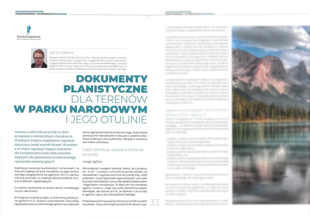 „Dokumenty planistyczne dla terenów w parku narodowym i jego otulinie” („Planungsdokumente für das Gelände im Nationalpark und seiner äußeren Schutzzone”) – der Rechtsanwältin Aneta Fornalik, aus dem resultiert, dass das Naturschutzgesetz eine Sammlung von Vorschriften unterschiedlicher Art darstellt. An einer Stelle finden wir Vorschriften, die sich auf die Fällung von Bäumen und Büschen beziehen, und an einer anderen Stelle gibt es Vorschriften, die für den Inhalt der Dokumente zum Bebaungsplan und zum Investitionsprozess eine Bedeutung haben.