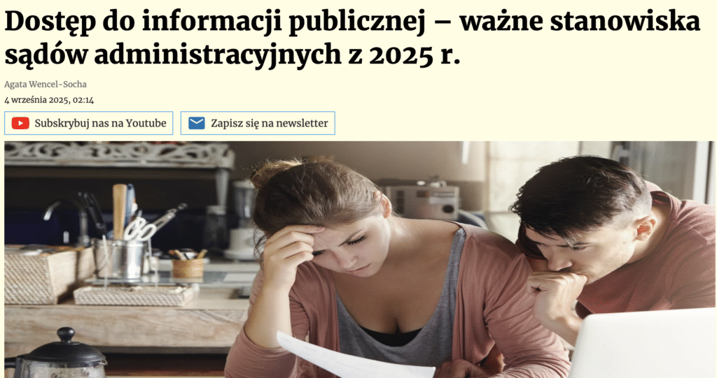 Gdzie kończy się prawo obywatela do informacji, a zaczyna ochrona interesu publicznego? R. pr. Agata Wencel-Socha w artykule opublikowanym w Dziennik Gazeta Prawna omawia najnowsze orzeczenia NSA dotyczące m.in. statusu osób publicznych, udostępniania dziennika budowy czy wynagrodzeń nauczycieli akademickich, a także formalnych wymogów przy składaniu skarg na bezczynność.