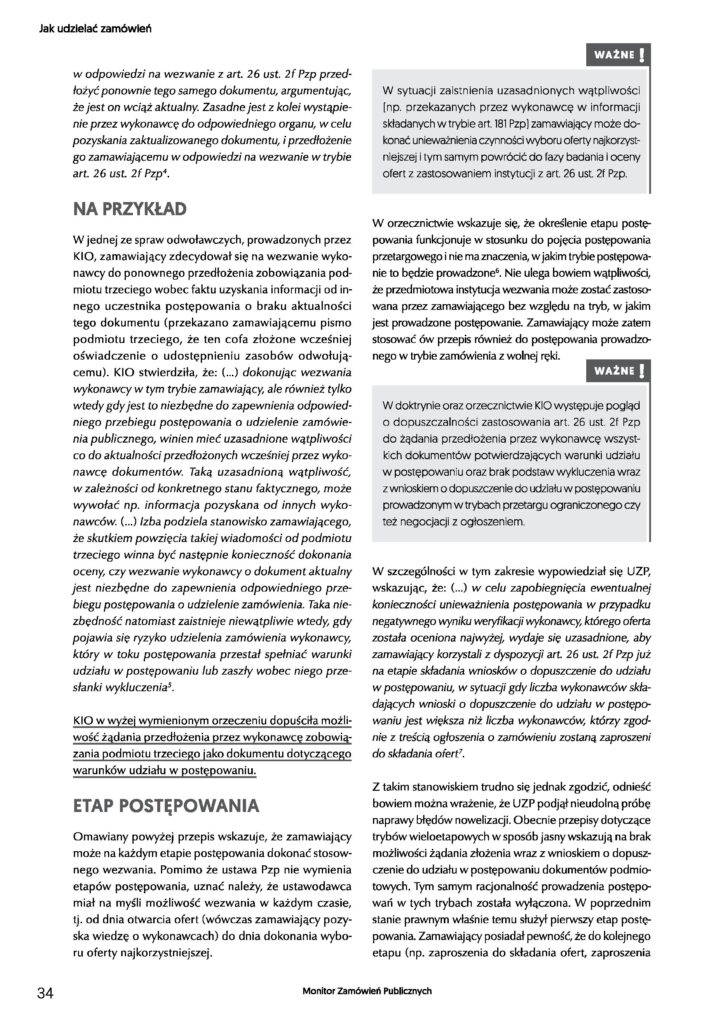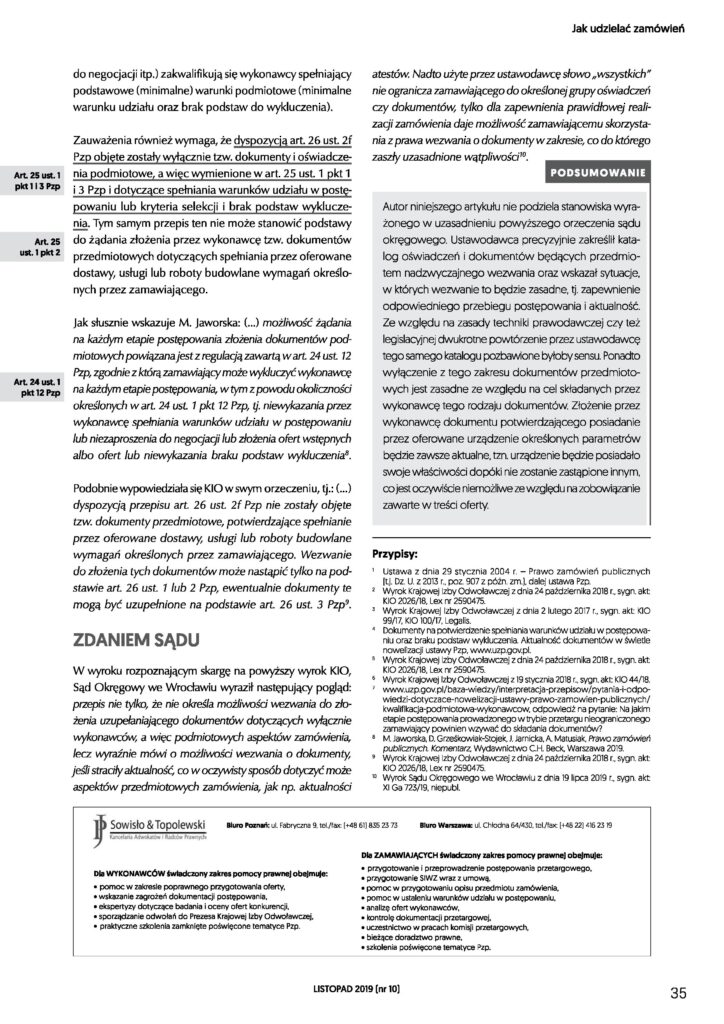 In the November 2019  issue (No. 10) of ‘Monitor Zamówień Publicznych’ [Public Procurement Monitor],  one of the most prestigious periodicals in the area of public procurement, an article written by attorney Wojciech Piórkowski, Director of the Public Procurement Law Department, concerning the institution of a summons under Article 26(2f) of the Public Procurement Law Act, was published.