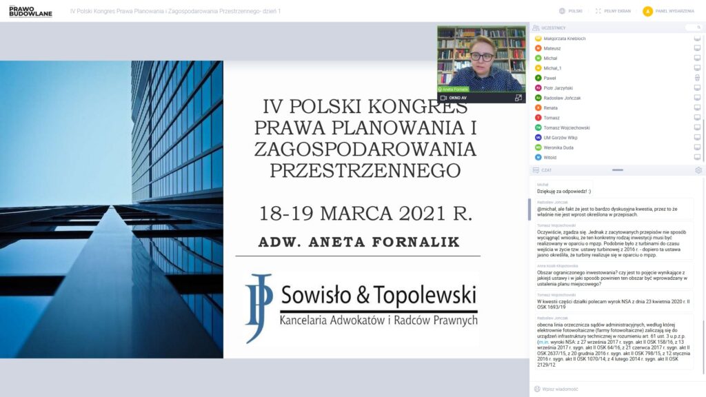 The 4th Polish Planning and Zoning Law Congress, organised by Must Read Media – Construction Law Quarterly, was held on 18-19 March 2021 in an on-line format.