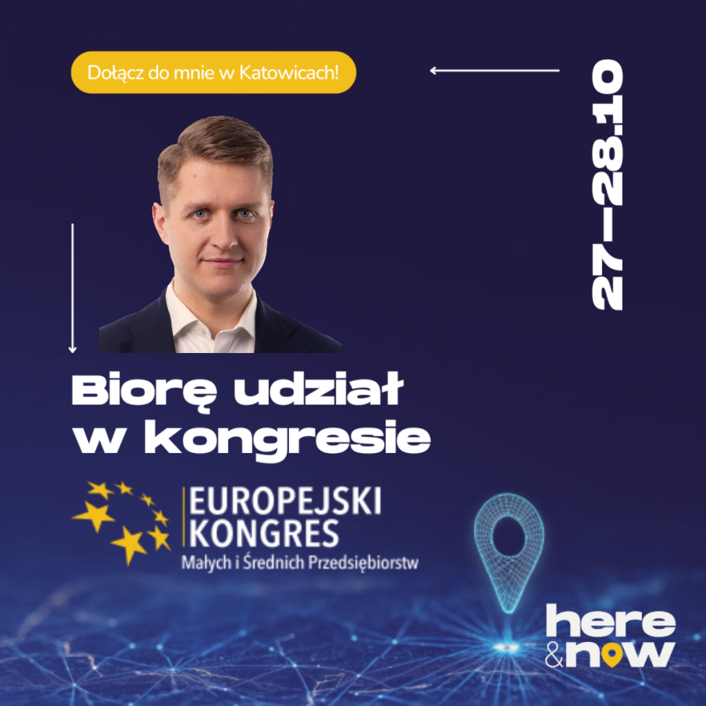 On October 27–28, 2025, we will meet in Katowice for the 15th edition of the European Congress of Small and Medium-Sized Enterprises – the largest event of its kind in Europe. This year’s slogan “HERE & NOW” is a call to action here and now, in a world full of dynamic economic, geopolitical, and technological changes.