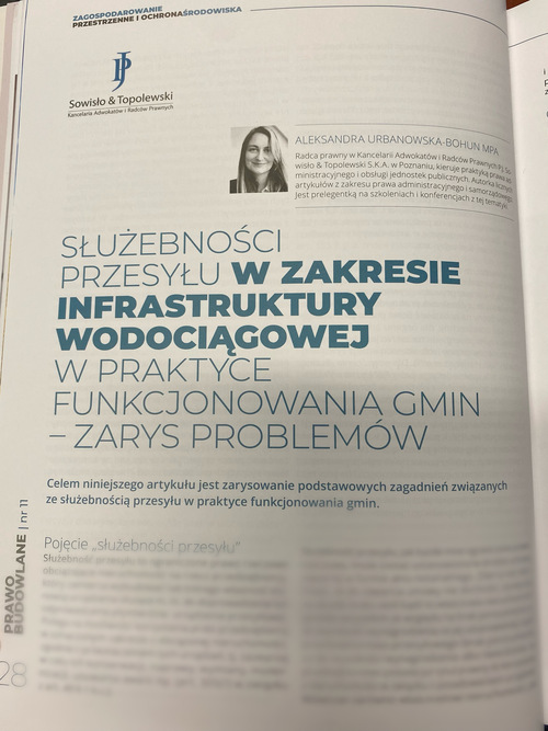 1) Article by barrister Aleksandra Urbanowska-Bohun: “Transmission easements for water supply infrastructure in the practice of municipalities – outline of issues”.