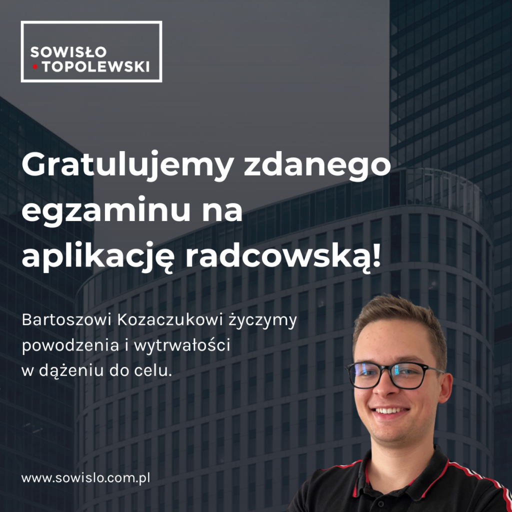 Z dumą przekazujemy informację, że Pan Bartosz Kozaczuk uzyskał pozytywny wynik z egzaminu na aplikację radcowską.