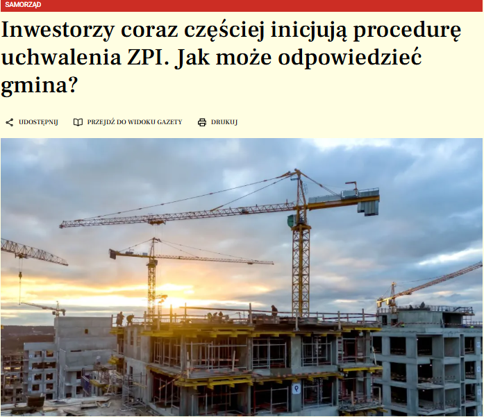 Artykuł omawia rosnące zainteresowanie Zintegrowanymi Planami Inwestycyjnymi jako narzędziem umożliwiającym sprawną realizację inwestycji. Autorka wyjaśnia, jak wygląda procedura inicjowana przez inwestora, jakie obowiązki spoczywają na organach gminy oraz jakie decyzje mogą podejmować władze lokalne. Analizuje także potencjalne konsekwencje uchwalenia ZPI dla gmin i społeczności lokalnych.
