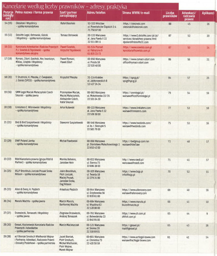 Jesteśmy nadal kancelarią nr 1 w Wielkopolsce, a jednocześnie 16-tą w Polsce według 19 Rankingu Kancelarii Prawniczych 2021 dziennika „Rzeczpospolita”