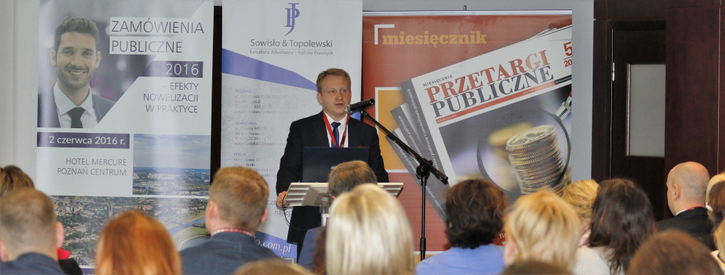 W dniu 2 czerw­ca 2016r. w ho­te­lu Mer­cu­re w Po­zna­niu od­by­ła się ogól­no­pol­ska kon­fe­ren­cja „Za­mó­wie­nia Pu­blicz­ne 2016 – efek­ty no­we­li­za­cji w prak­ty­ce”, któ­rej or­ga­ni­za­to­rem by­ła na­sza Kan­ce­la­ria wraz z wy­daw­cą bran­żo­we­go mie­sięcz­ni­ka „Prze­tar­gi Pu­blicz­ne”.