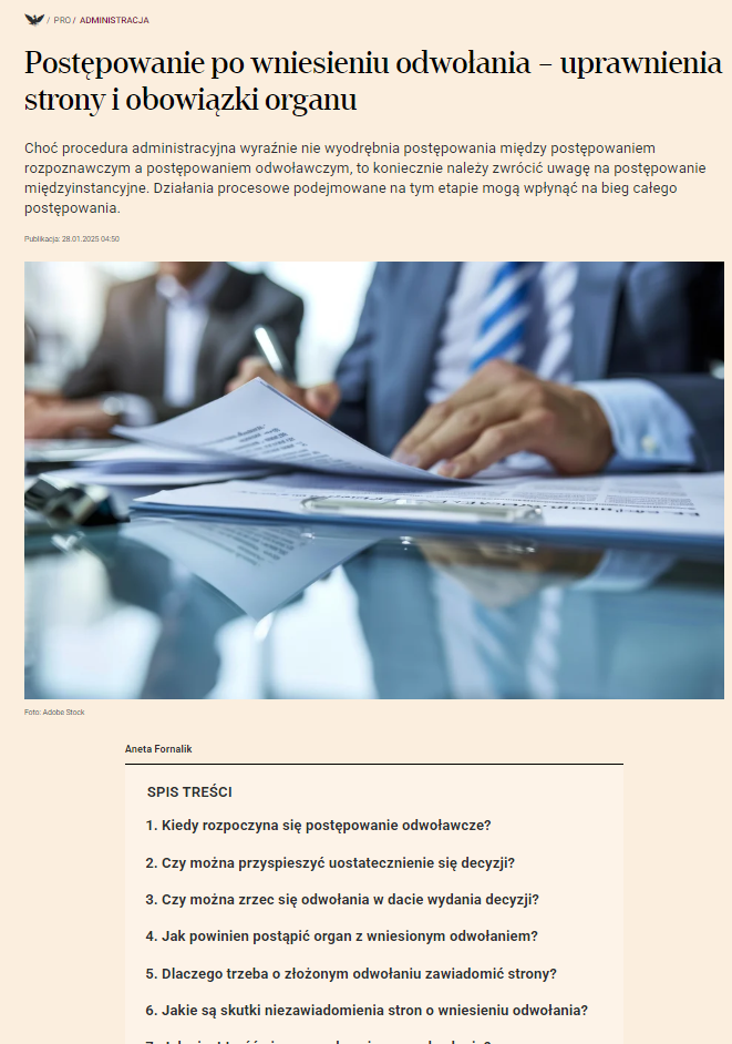 „Postępowanie po wniesieniu odwołania – uprawnienia strony i obowiązki organu”