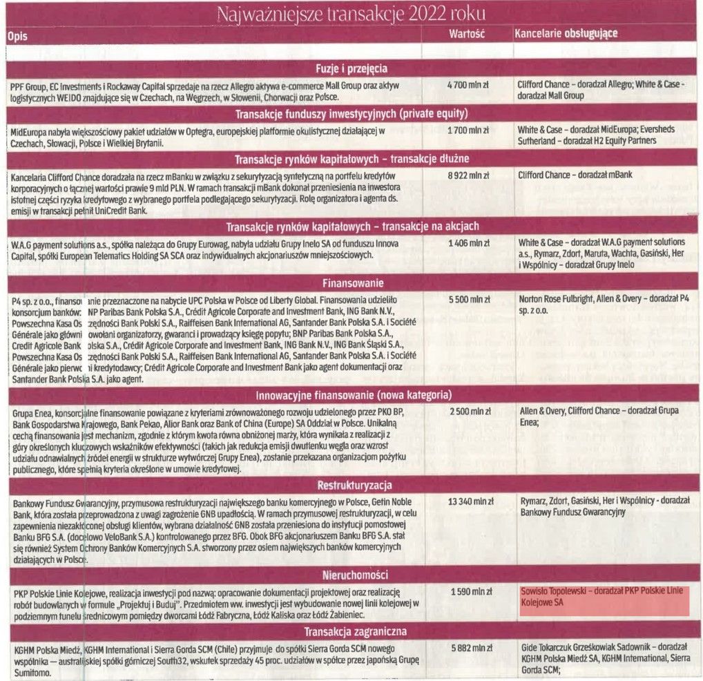 W tegorocznej, XXI edycji Rankingu Kancelarii Prawniczych dziennika Rzeczpospolita oceniane były Najważniejsze transakcje zakończone w 2022 roku. Z dumą informujemy, że otrzymaliśmy wyróżnienie w kategorii Nieruchomości za realizację inwestycji pod nazwą: opracowanie dokumentacji projektowej oraz realizację robót budowlanych w formule „Projektuj i buduj”.