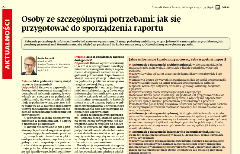 W artykule znajdują się wskazówki dotyczące przygotowań, wymaganych informacji oraz odpowiedzialności instytucji publicznych za spełnienie wymagań w zakresie dostępności architektonicznej, cyfrowej i informacyjno-komunikacyjnej.