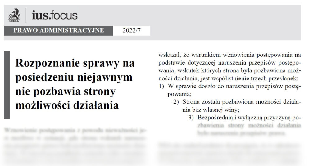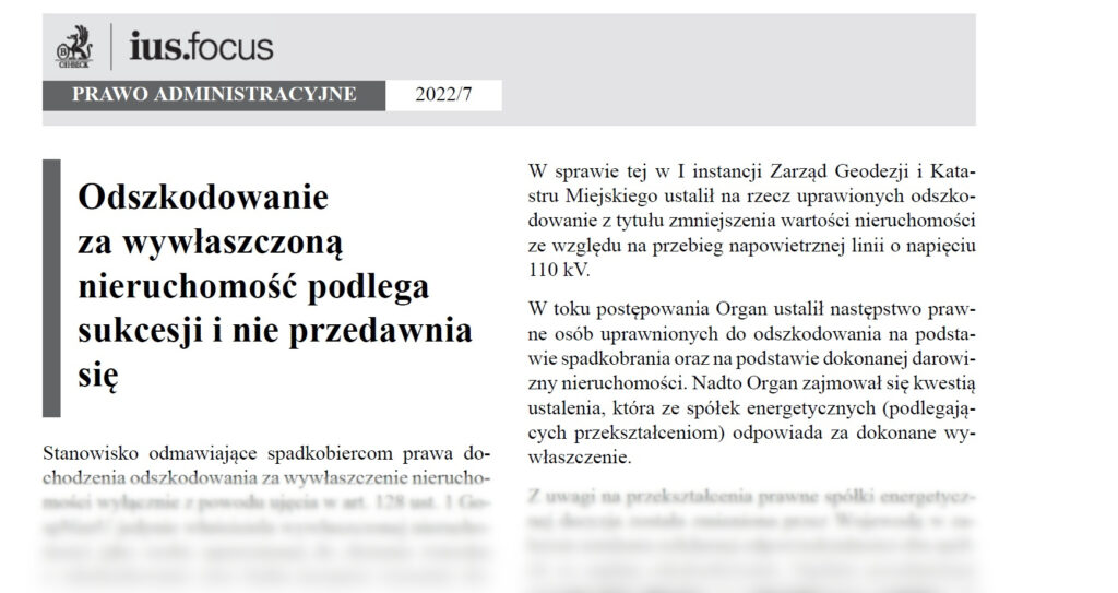 W ramach współpracy z Wydawnictwem C.H. Beck – Serwisem Informacji Prawnej „Legalis” prawnicy naszej Kancelarii komentują ważne dla praktyki orzeczenia sądów administracyjnych.
