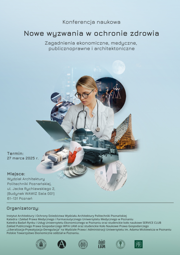 W dniu 27 marca 2025 roku na Wydziale Architektury Politechniki Poznańskiej odbyła się konferencja naukowa „Nowe wyzwania w ochronie zdrowia. Zagadnienia ekonomiczne, medyczne, publicznoprawne i architektoniczne”. Jest to wydarzenie cykliczne, organizowane przez cztery poznańskie uczelnie, prowadzące badania i kształcenie w obszarze zdrowia: Uniwersytet Medyczny w Poznaniu, Politechnikę Poznańską, Uniwersytet Ekonomiczny oraz Uniwersytet im. Adama Mickiewicza w Poznaniu. Tegorocznym tematem wiodącym był: „Szpital odporny na kryzys”. W ramach IV modułów cenieni eksperci rozmawiali o projektowaniu szpitali, prowadzeniu inwestycji, najważniejszych problemach i kluczowych obszarach wymagających zmian w szpitalnictwie oraz zasadach finansowania świadczeń opieki zdrowotnej, a także o zarządzaniu procesem leczenia w sytuacji nagłego stanu zagrożenia zdrowia i życia, przybliżając tym samym codzienną pracę i wyzwania zespołów ratownictwa medycznego. Nie zabrakło także tematów z dziedziny prawa i organizacji – prelegenci rozważali m.in. jaką przyszłość ma partnerstwo publiczno-prywatne.