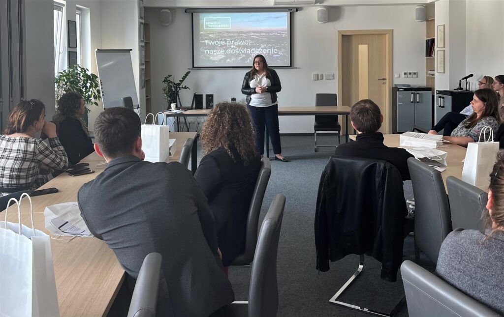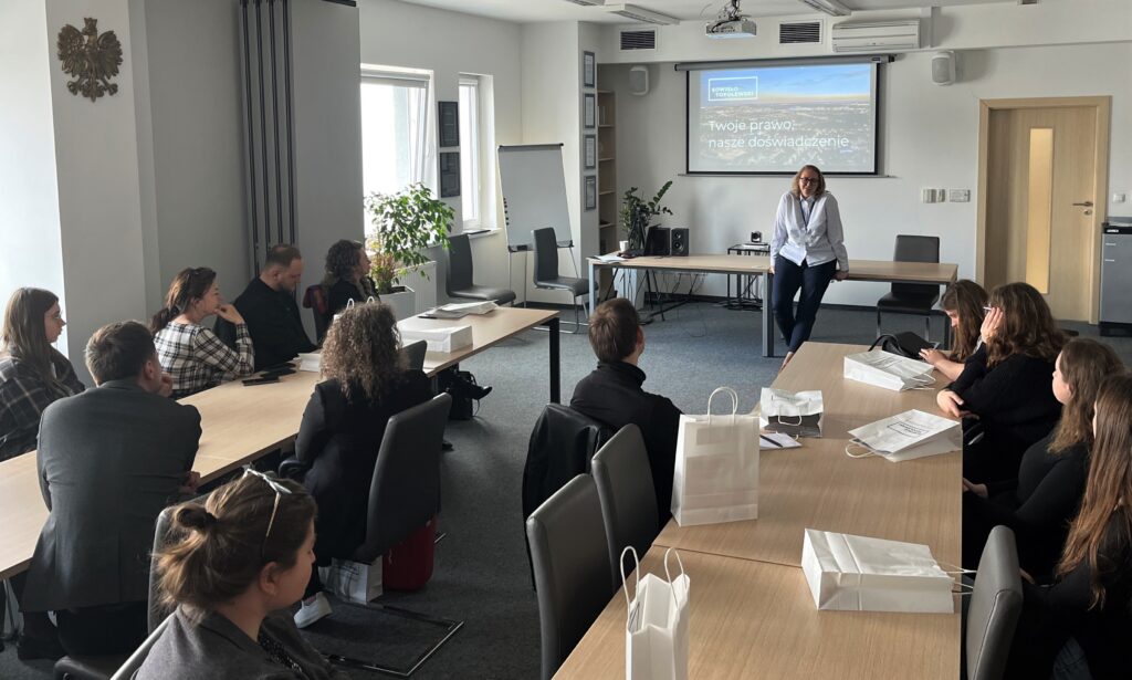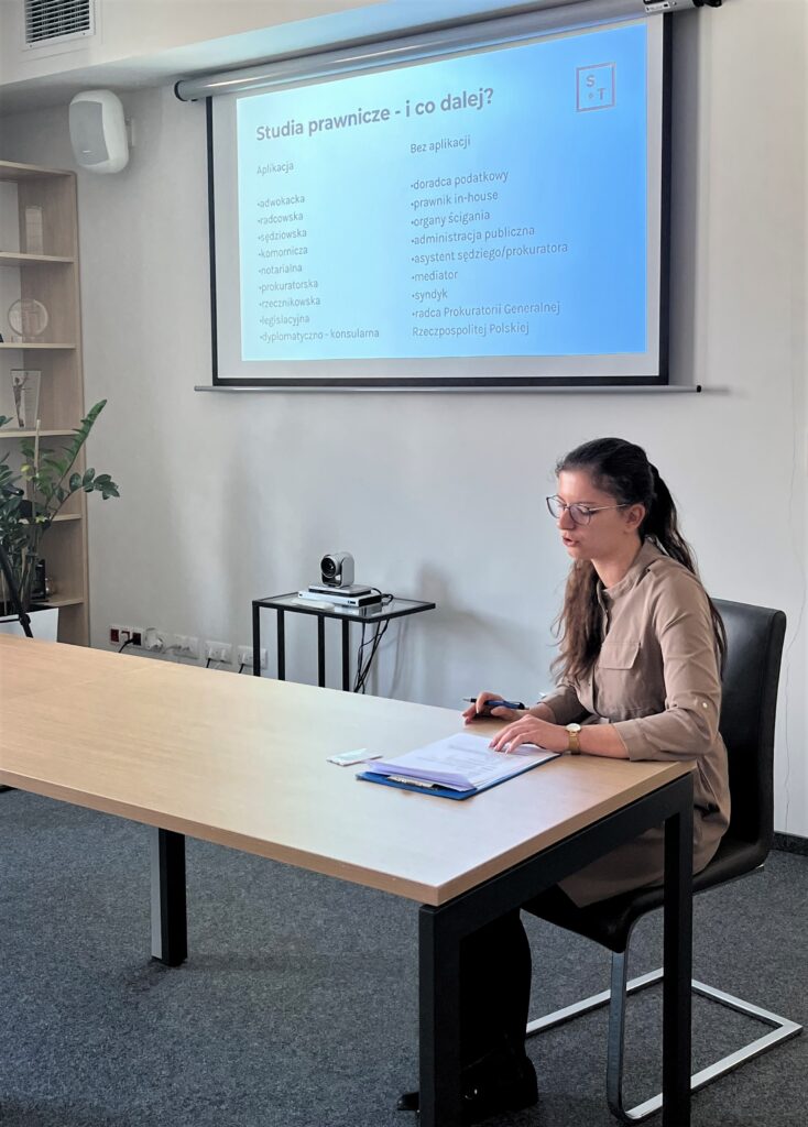Podczas wizyty adwokat Aneta Fornalik, adwokat Anna Marciniak i radca prawny Małgorzata Łobocka-Szok opowiedziały o zawodzie prawnika, pracy w naszej Kancelarii oraz o możliwościach rozwoju kariery zawodowej na rynku usług prawnych. Całość zakończyła interesująca pod względem merytorycznym dyskusja.