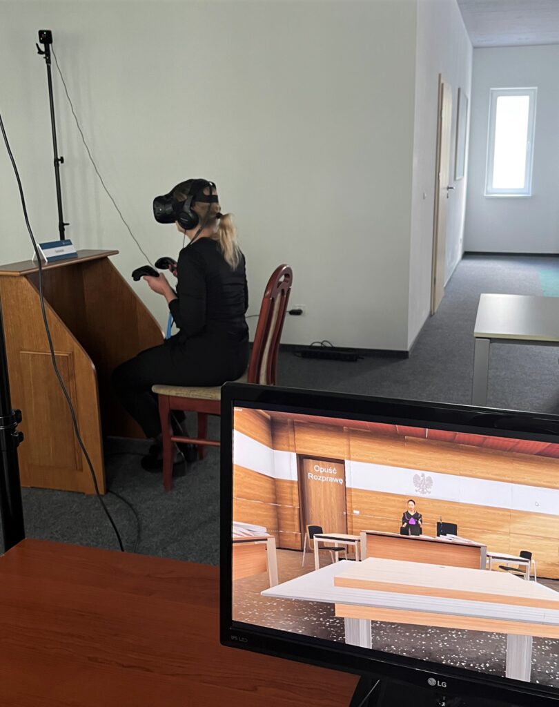 Zwieńczeniem wydarzenia była prezentacja Wirtualnej Sali Sądowej, która znajduje się w naszej Kancelarii. Studenci mieli wyjątkową okazję wcielić się w rolę sędziego, prokuratora, obrońcy, świadka lub publiczności w immersyjnej rzeczywistości sali sądowej.