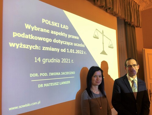 Dnia 14 grudnia 2021 roku w Domu Pracy Twórczej i Wypoczynku Uniwersytetu im. Adama Mickiewicza w Poznaniu, przedstawiciele Departamentu Prawa Podatkowego, w osobach: doradca podatkowy Iwona Jacieczko oraz dr Mateusz Langer przeprowadzili szkolenie pt. „Wybrane aspekty prawa podatkowego dotyczące uczelni wyższych: zmiany od 1.01.2022 r.”.