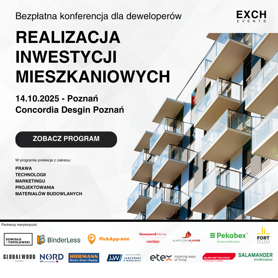 Już 14 października 2025 r. w przestrzeni Concordia Design Poznań odbędzie się konferencja „Realizacja inwestycji mieszkaniowych”, podczas której będziemy dzielić się praktyczną wiedzą z branżą deweloperską. Na miejscu obecni będą nasi prawnicy: adw. Aneta Fornalik i r. pr. Mateusz Niewiński.