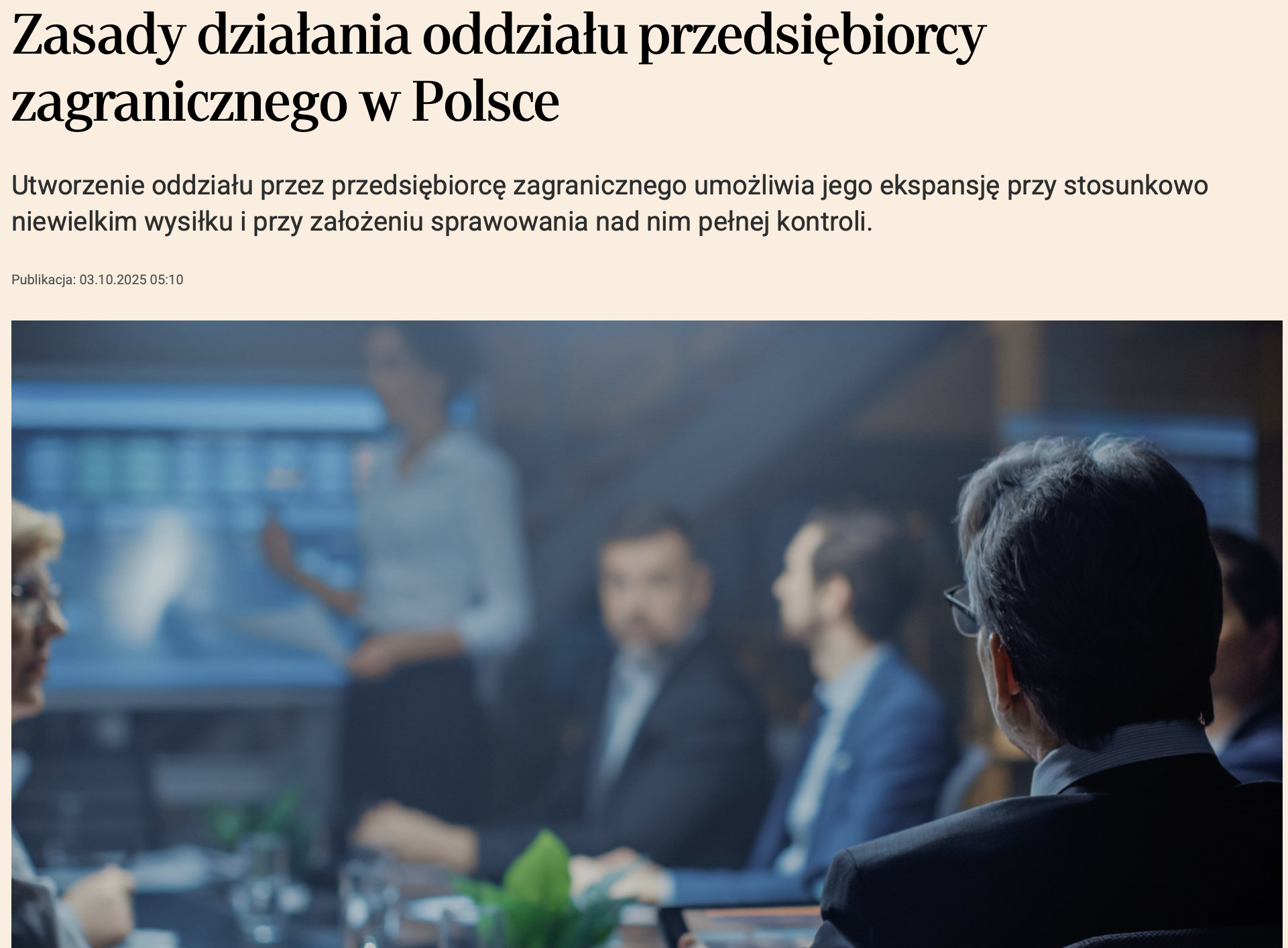 Autorki artykułu opublikowanego na łamach „Rzeczpospolitej” – r. pr. Alicja Rostkowska i apl. radc. Martyna Przytocka przybliżają zasady funkcjonowania oddziału przedsiębiorcy zagranicznego w Polsce. Wyjaśniają, jak ta forma działalności pozwala rozwijać biznes na nowych rynkach bez konieczności zakładania spółki, kto podejmuje decyzje w oddziale i czy musi on prowadzić własne sprawozdania finansowe.