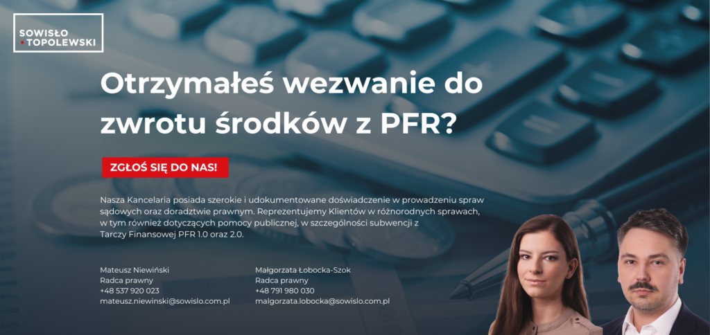 Zwrot środków z PFR staje się coraz częściej tematem poruszanym w mediach, zwłaszcza w kontekście wezwań do zwrotu uzyskanej subwencji oraz pozwów kierowanych przeciwko przedsiębiorcom, którzy skorzystali z programów pomocowych uruchomionych przez Państwo w latach 2020 i 2021 w związku z pandemią Covid-19. Czy beneficjenci mogą skutecznie przeciwstawić się tym roszczeniom?
